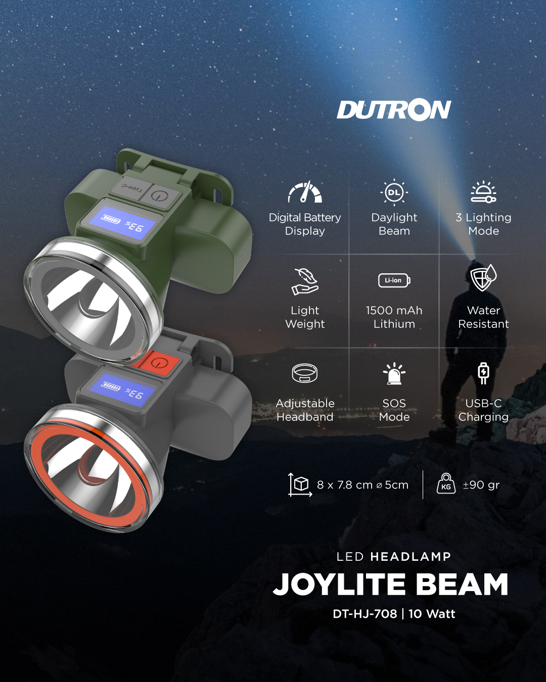 Senter kepala ini mempunyai digital battery display, Anda dapat memantau status baterai senter kapan saja. Fitur ini sangat berguna untuk memastikan Anda selalu memiliki cahaya saat dibutuhkan, baik saat berkemah, bekerja, atau dalam situasi darurat.